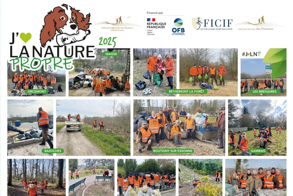 L’opération “J’aime la Nature Propre” (JLNP), initiative participative de ramassage des déchets dans la nature portée par la Fédération Nationale des Chasseurs (FNC), a connu sa 2ᵉ édition en Île-de-France, organisée par la Fédération Interdépartementale des Chasseurs d’Île-de-France (FICIF) et la Fédération Départementale des Chasseurs de Seine-et-Marne (FDC77).